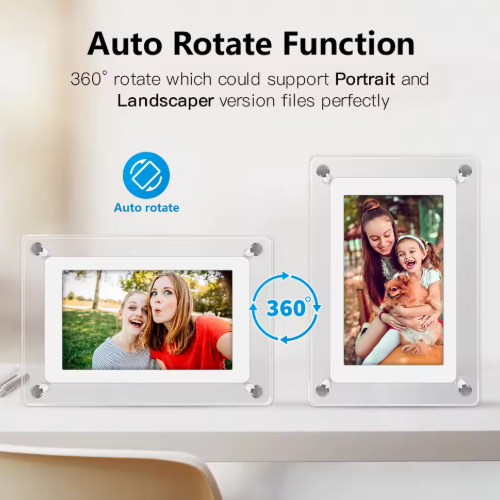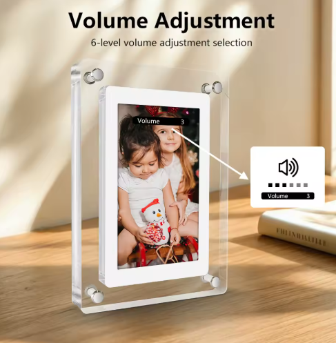 Featuring a crystal-clear IPS display and sleek transparent acrylic design, it showcases photos, videos, and music beautifully. Ideal for desks, shelves, or gift-giving, it’s a stylish way to relive moments every day.